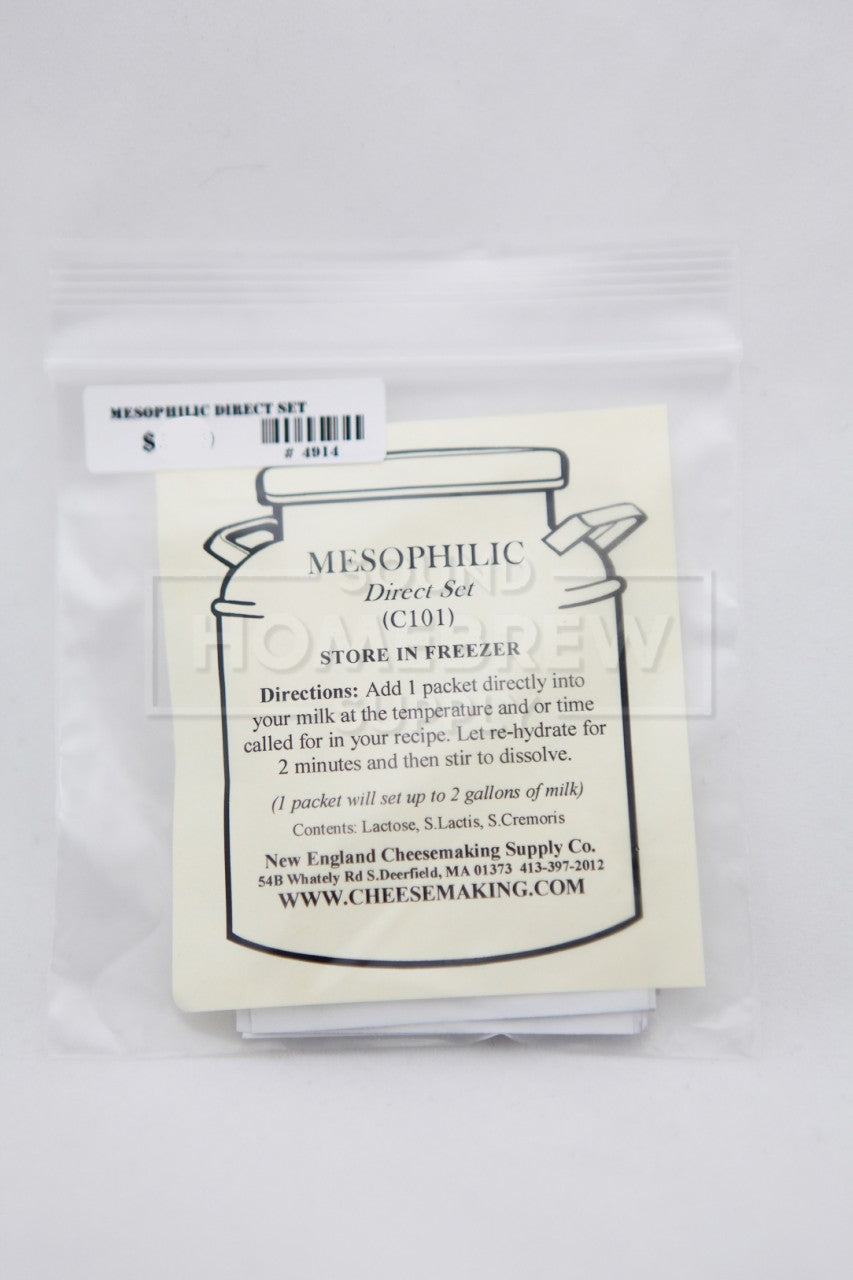 Used in making a variety of hard, moderate temperature loving cheeses including Cheddar, Monterey Jack, Stilton, Edam, Gouda, Muenster, Blue, and Colby. This culture is added directly to your milk and takes all the muss and fuss out of the culturing process. CULTURE INCLUDES: lactose, lactococcus lactis subsp. lactis, lactococcus lactis subsp. cremoris YIELD: Each packet will set up to 2 gallons of milk. DIRECTIONS: Add 1 packet to your milk at proper temperature when recipe calls for adding starter culture. STORAGE: Keep packages in the freezer, they will last up to 2 years if stored properly.